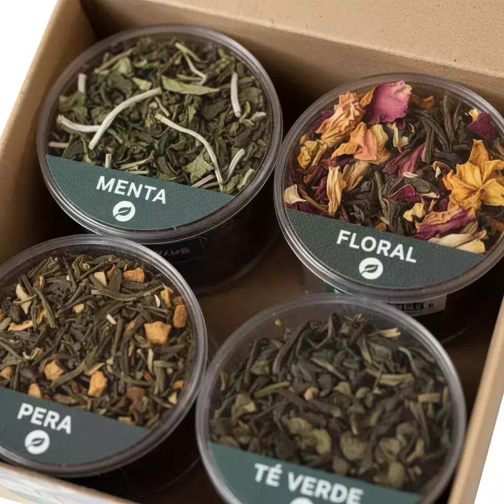 • Floral: té verde Misiones, té verde Chun Mee, pimpollos de jazmín y pétalos de rosa
